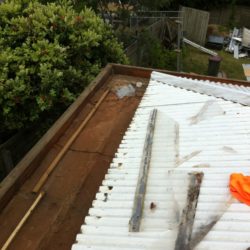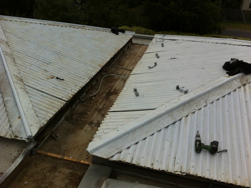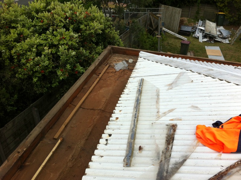 The home features five “pods” which was very modern for the era of the home. The original old corrugated iron roof was leaking and the existing box gutters were installed with incorrect supports and were in desperate need of repair. True Blue Roofing were able to help by removing all of the existing roofing iron, box gutters and re-build and install new box gutters and new roofing iron. The photos below show what years of condensation had done to the particle board underneath the old box gutters.